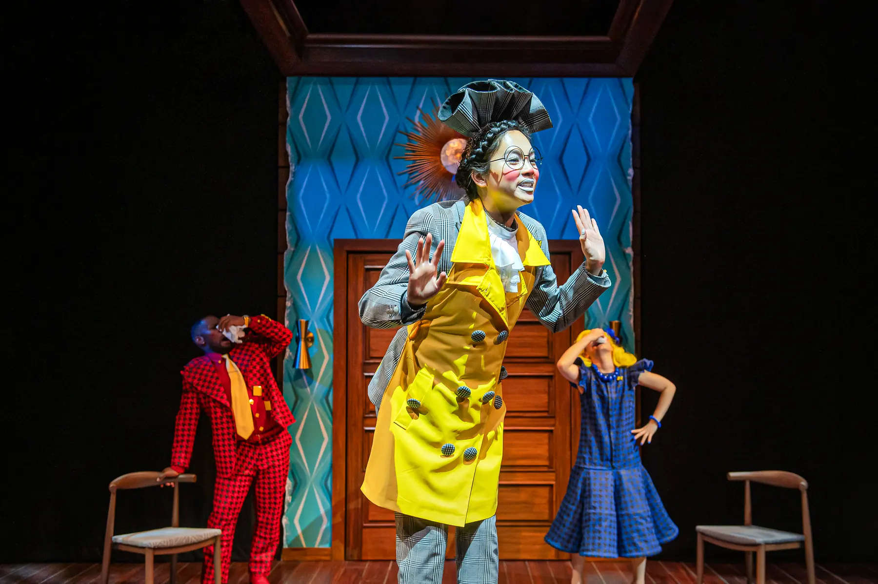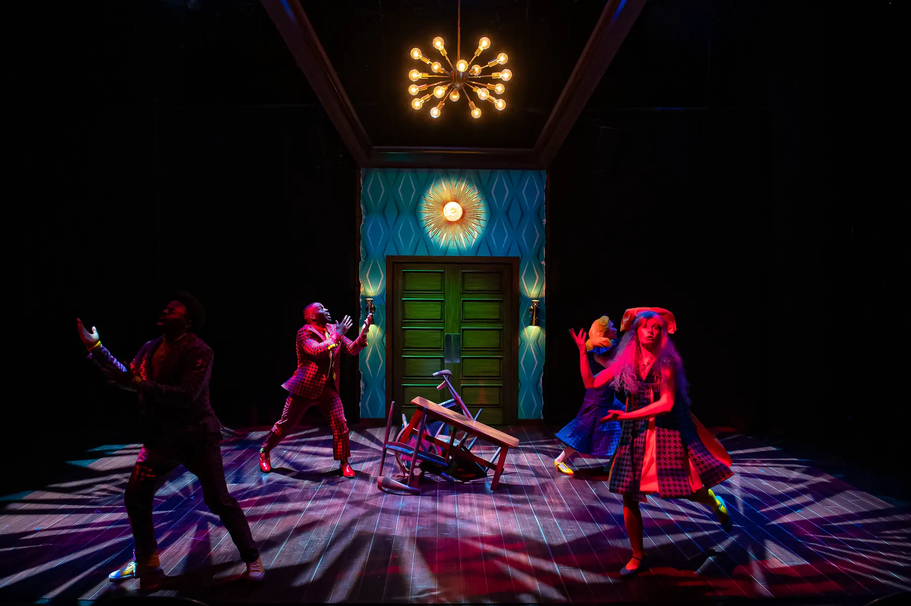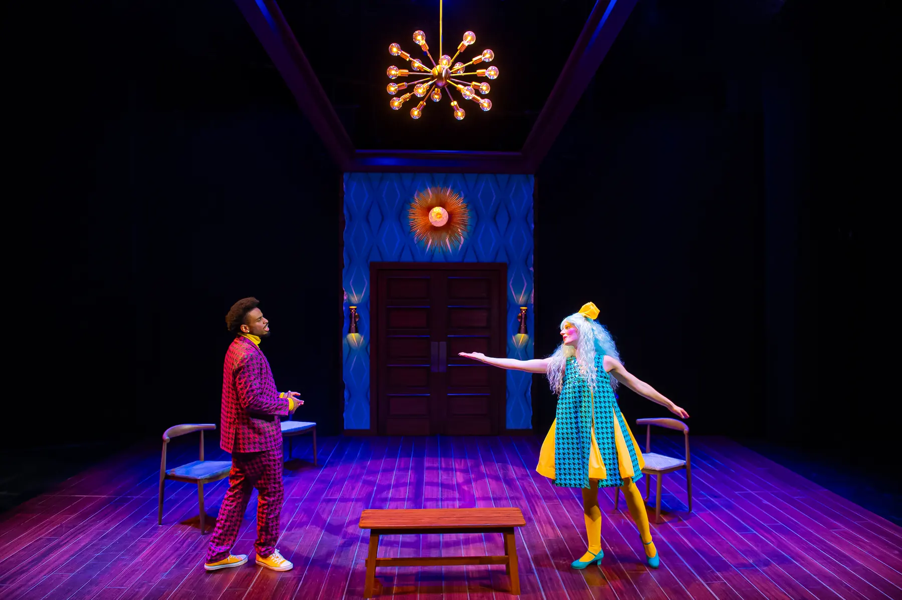 The Bald Soprano reimagines a polished mid-century American dream interior, layering theatrical absurdity into a seemingly familiar domestic world.